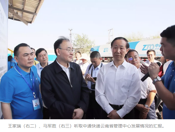全國(guó)政協(xié)副主席王家瑞、國(guó)家郵政局局長(zhǎng)馬軍勝調(diào)研中通快遞云南省管理中心