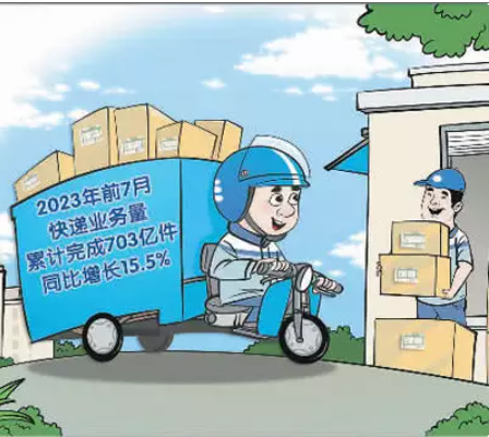 中國(guó)國(guó)家郵政局發(fā)布的最新數(shù)據(jù)顯示,2023年前7月,中國(guó)快遞業(yè)務(wù)量同比增長(zhǎng)15.5%。