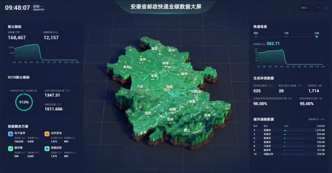 經(jīng)過多年在綠色物流的持續(xù)投入,菜鳥已經(jīng)構(gòu)建全鏈路綠色物流體系,從訂單、包裝、運輸、倉儲、回收這5個主要物流鏈路環(huán)節(jié),推動物流減碳目標(biāo)和系統(tǒng)轉(zhuǎn)型的實現(xiàn)。除自身減碳之外,菜鳥發(fā)揮數(shù)字技術(shù)優(yōu)勢,為生態(tài)伙伴提供低碳物流解決方案。在浙江、安徽、湖南、廣西四省郵政管理局支持下,菜鳥開展了郵政快遞行業(yè)的數(shù)字化碳資產(chǎn)管理系統(tǒng)試點,推動行業(yè)科學(xué)減碳,首個試點系統(tǒng)已在安徽上線。