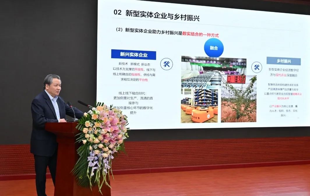 會上,中國社科院財經(jīng)戰(zhàn)略研究院院長何德旭作了《新型實體企業(yè)與鄉(xiāng)村振興》的主題報告,他指出,新型實體企業(yè)助力鄉(xiāng)村振興的核心在于促進(jìn)數(shù)字經(jīng)濟(jì)與現(xiàn)代農(nóng)業(yè)深度融合。新型實體企業(yè)具有先進(jìn)的數(shù)字技術(shù)能力,可通過技術(shù)要素導(dǎo)入、數(shù)據(jù)資源開發(fā)、網(wǎng)絡(luò)效應(yīng)發(fā)揮等,對傳統(tǒng)農(nóng)業(yè)生產(chǎn)要素加以優(yōu)化配置與高效利用,推動農(nóng)業(yè)發(fā)展進(jìn)入新階段。建議以數(shù)字技術(shù)為保障,以新型實體企業(yè)為驅(qū)動,為農(nóng)業(yè)農(nóng)村構(gòu)建全鏈條現(xiàn)代化服務(wù)體系。