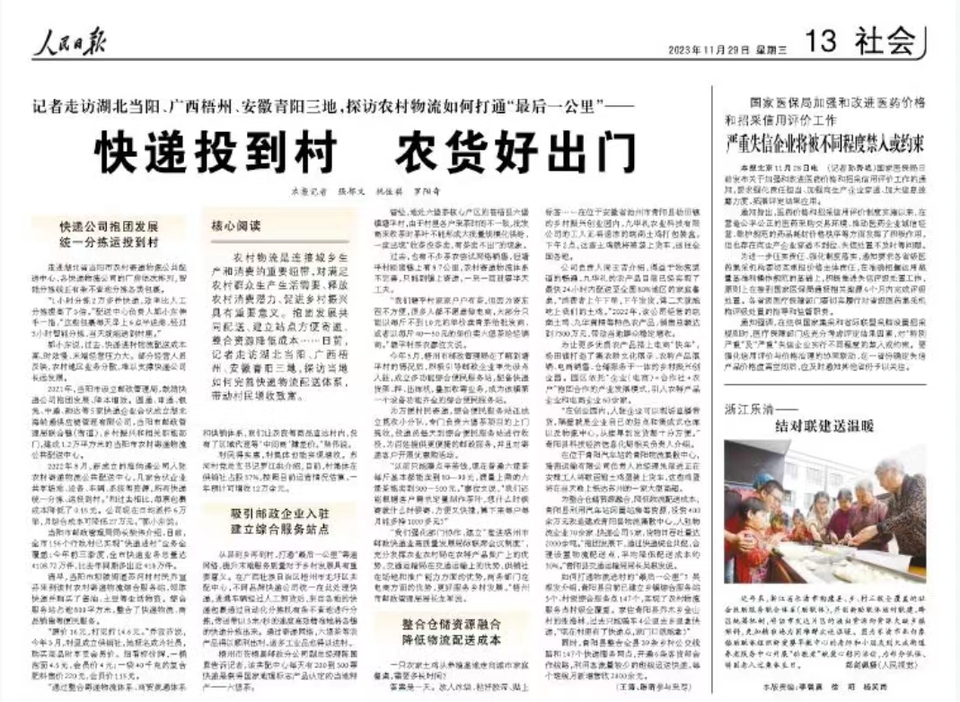 人民日?qǐng)?bào):快遞投到村 農(nóng)貨好出門(mén)