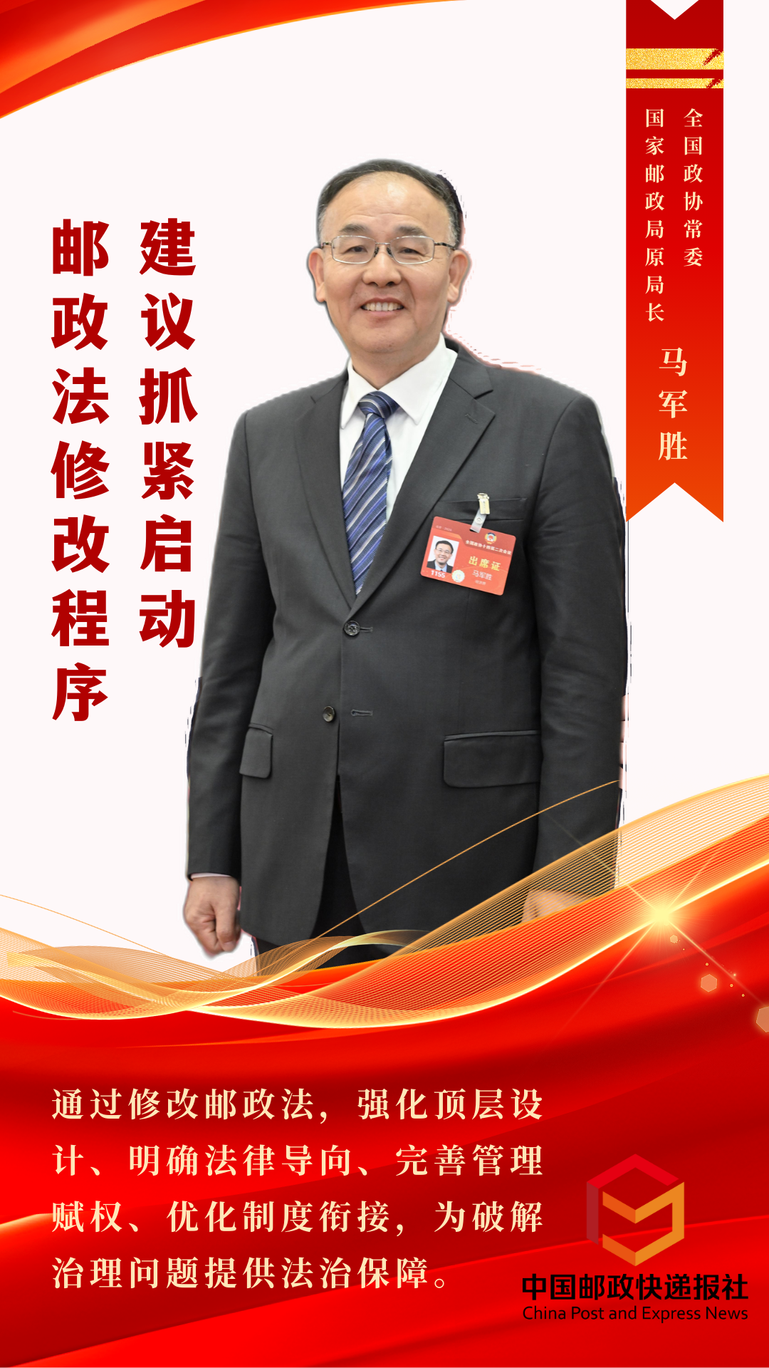 全國(guó)政協(xié)常委馬軍勝:建議抓緊啟動(dòng)郵政法修改程序