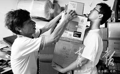 收快遞比起送快遞則更加辛苦。拿起背包、帶上墨鏡,下午兩點(diǎn)整我和吳師傅準(zhǔn)時(shí)出門?!皫讉€(gè)客戶已經(jīng)打電話來(lái)催了?!彬T著電瓶車來(lái)到不遠(yuǎn)處的一幢辦公樓里,前臺(tái)已經(jīng)將包裹準(zhǔn)備好。吳師傅拿出一臺(tái)小巧的電子秤,因?yàn)槭召M(fèi)需要按重量來(lái)收,沒(méi)有秤很難說(shuō)服客戶。簽字、收款,然后將包裹放入包內(nèi),整個(gè)過(guò)程也就5分鐘。