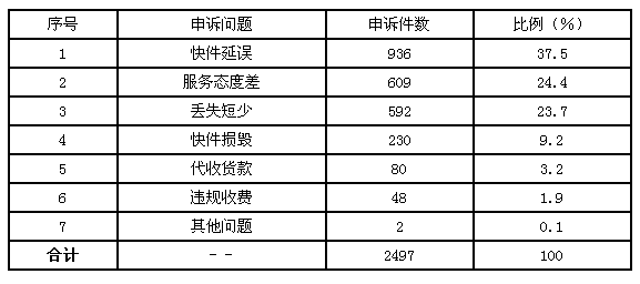 二、快遞業(yè)務申訴情況