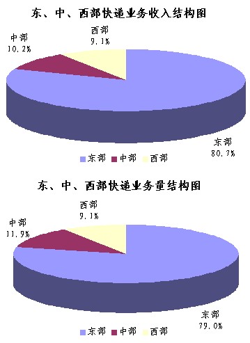 1-4月,東、中、西部地區(qū)快遞業(yè)務(wù)收入的比重分別為80.7%、10.2%和9.1%,業(yè)務(wù)量比重分別為79.0%、11.9%和9.1%。與去年同期相比,東部地區(qū)快遞業(yè)務(wù)收入比重下降了0.7個(gè)百分點(diǎn),快遞業(yè)務(wù)量比重下降了1.7個(gè)百分點(diǎn);中部地區(qū)快遞業(yè)務(wù)收入比重上升了0.4個(gè)百分點(diǎn),快遞業(yè)務(wù)量比重上升了1.7個(gè)百分點(diǎn);西部地區(qū)快遞業(yè)務(wù)收入比重上升了0.3個(gè)百分點(diǎn),快遞業(yè)務(wù)量比重與去年同期持平。