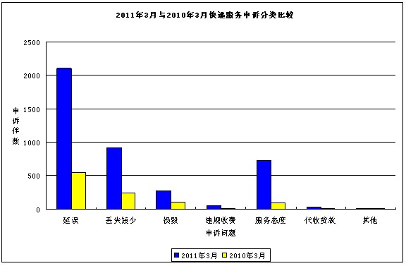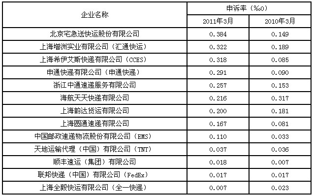 主要快遞企業(yè)申訴率2011年3月與2010年3月比較統(tǒng)計表