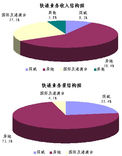 一季度,全國規(guī)模以上快遞服務(wù)企業(yè)業(yè)務(wù)量累計完成7.1億件,同比增長50.4%;業(yè)務(wù)收入累計完成156.6億元,同比增長26.2%。其中,同城業(yè)務(wù)收入累計完成13.1億元,同比增長54.7%;異地業(yè)務(wù)收入累計完成91.4億元,同比增長34.6%;國際及港澳臺業(yè)務(wù)收入累計完成43億元,同比增長7.3%。
