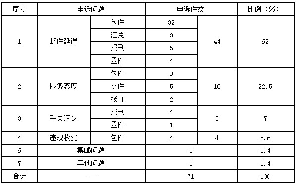 2011年03月16日來源:一、 郵政服務(wù)申訴情況
