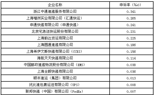 (二)消費(fèi)者對(duì)快遞企業(yè)申訴情況