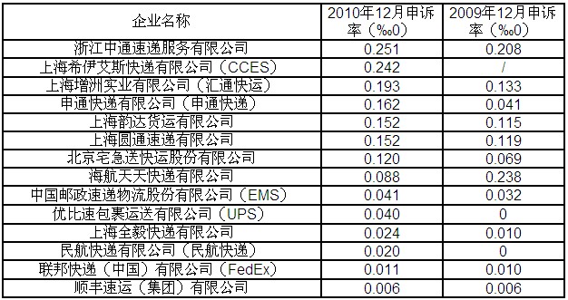 國(guó)家郵政局關(guān)于2010年12月郵政業(yè)消費(fèi)者申訴情況的通告