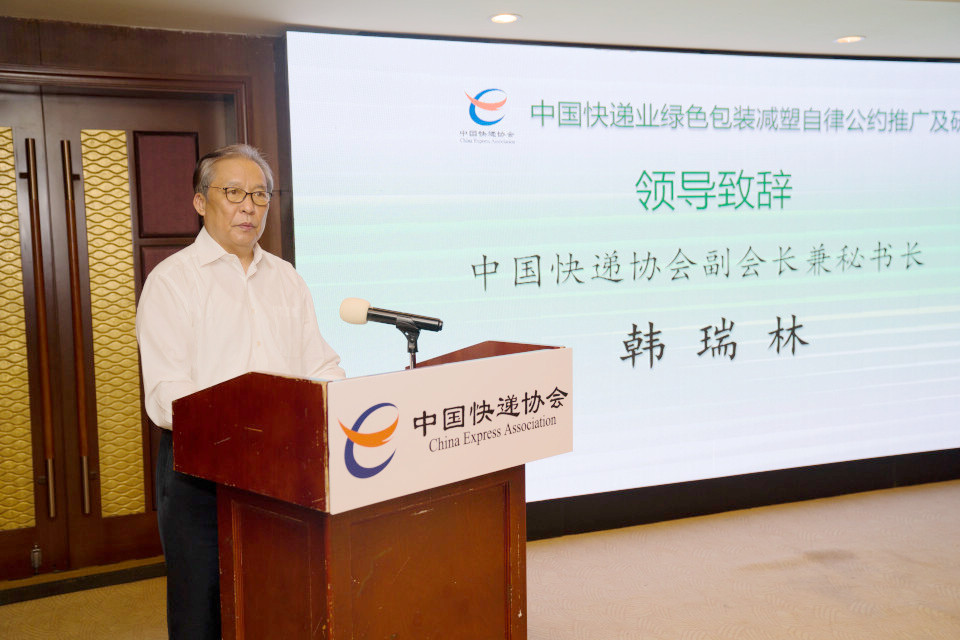 當(dāng)天,由中國(guó)快遞協(xié)會(huì)主辦,中國(guó)快遞協(xié)會(huì)綠色環(huán)保專業(yè)委員會(huì)承辦的《中國(guó)快遞業(yè)綠色包裝減塑自律公約》推廣及研討會(huì)在京召開。韓瑞林在會(huì)上表示,《自律公約》既是簽約會(huì)員單位自身要遵守的承諾,也是中國(guó)快遞協(xié)會(huì)向全行業(yè)、全社會(huì)發(fā)出的動(dòng)員和號(hào)召。中國(guó)快遞協(xié)會(huì)愿意與政府部門、會(huì)員企業(yè)、各友好協(xié)會(huì)和公益組織一起攜手合作、共同奮斗,為實(shí)施快遞包裝“綠色革命”,推進(jìn)中國(guó)快遞業(yè)生態(tài)環(huán)保事業(yè)做出新的貢獻(xiàn)。