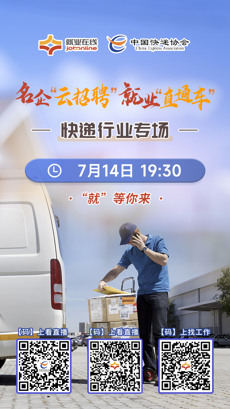 2022年07月11日來(lái)源:中國(guó)快遞協(xié)會(huì)7月14日19:30,人社部全國(guó)人才流動(dòng)中心攜手中國(guó)快遞協(xié)會(huì)開(kāi)展“名企云招聘 就業(yè)直通車”直播帶崗活動(dòng)——快遞行業(yè)專場(chǎng),中通、順豐、申通、百世等知名快遞企業(yè)傾力加入,高薪好崗,“職”等你來(lái)!