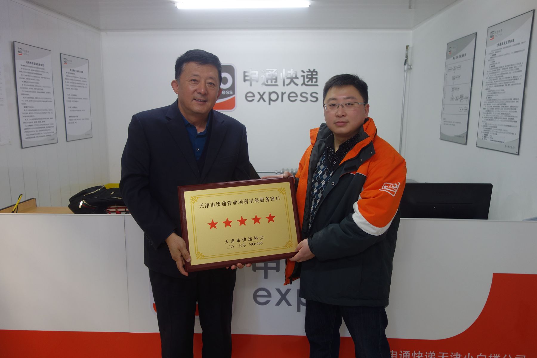 天津市快遞協(xié)會為天津市快遞營業(yè)場所五星級服務(wù)窗口授牌