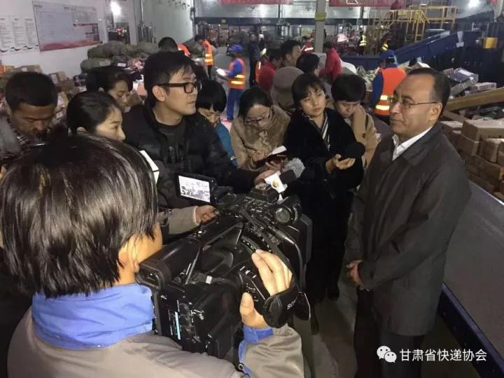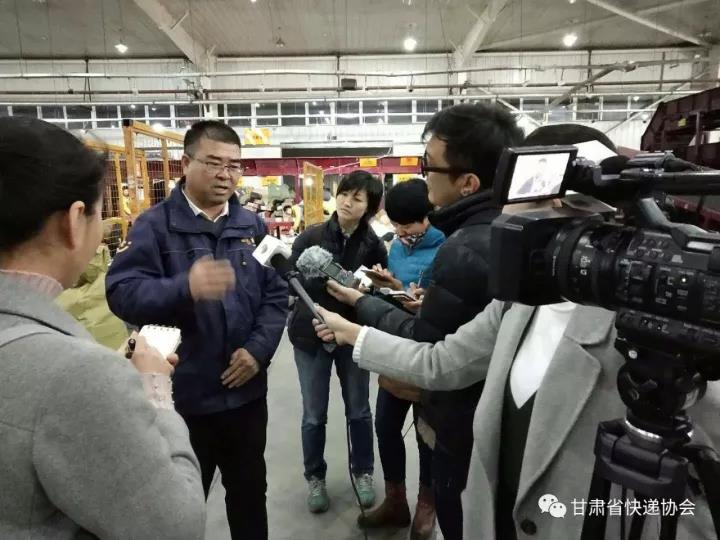 在蘭州韻達快遞分撥中心,甘肅省快遞協(xié)會秘書長景輝接受媒體采訪