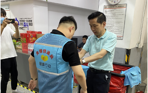 慰問組一行先后來到河西區(qū)郵政、順豐、京東、中通等4處基層網(wǎng)點(diǎn),向一線郵政快遞從業(yè)人員發(fā)放防暑藥品、飲品以及防暑降溫背心等物資,并祝廣大郵政快遞從業(yè)人員端午安康。