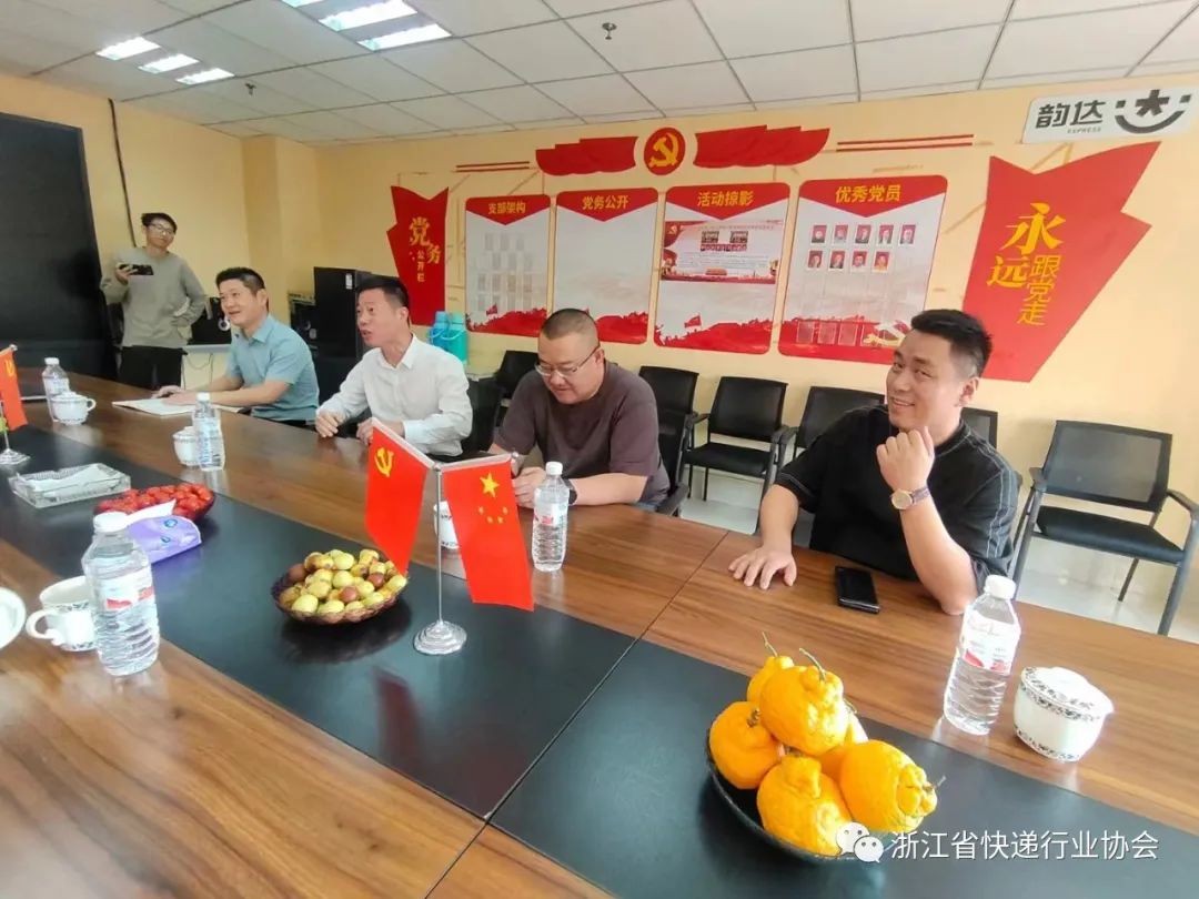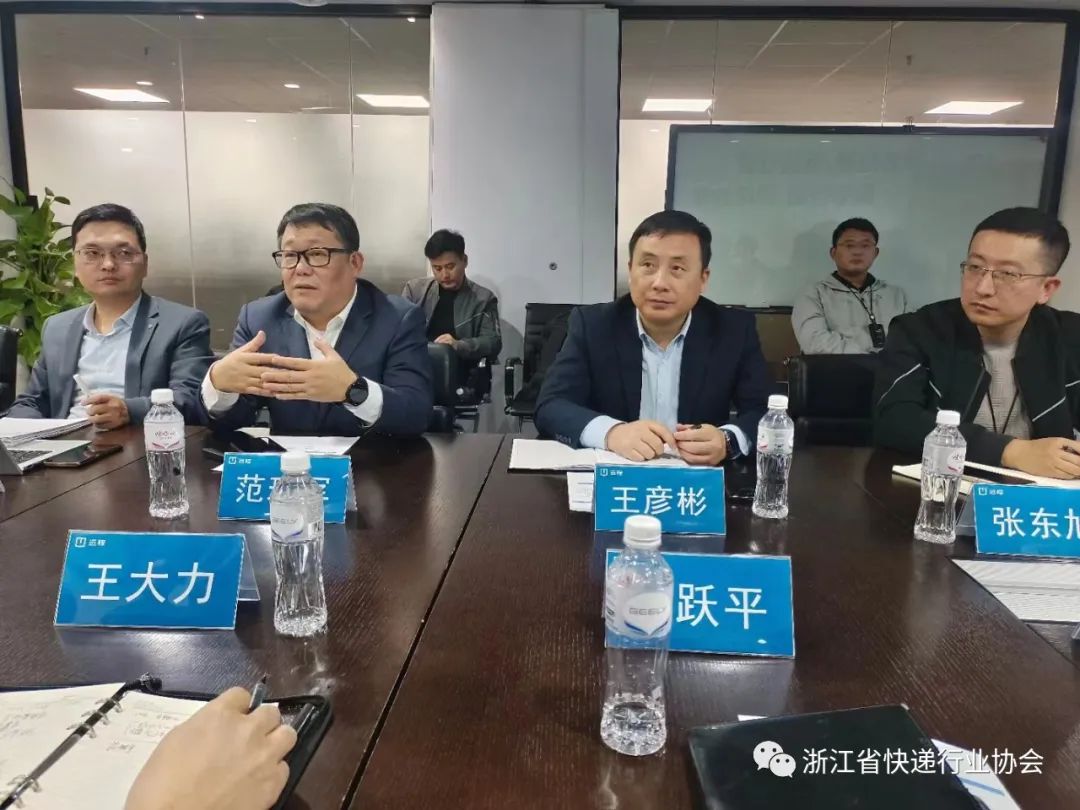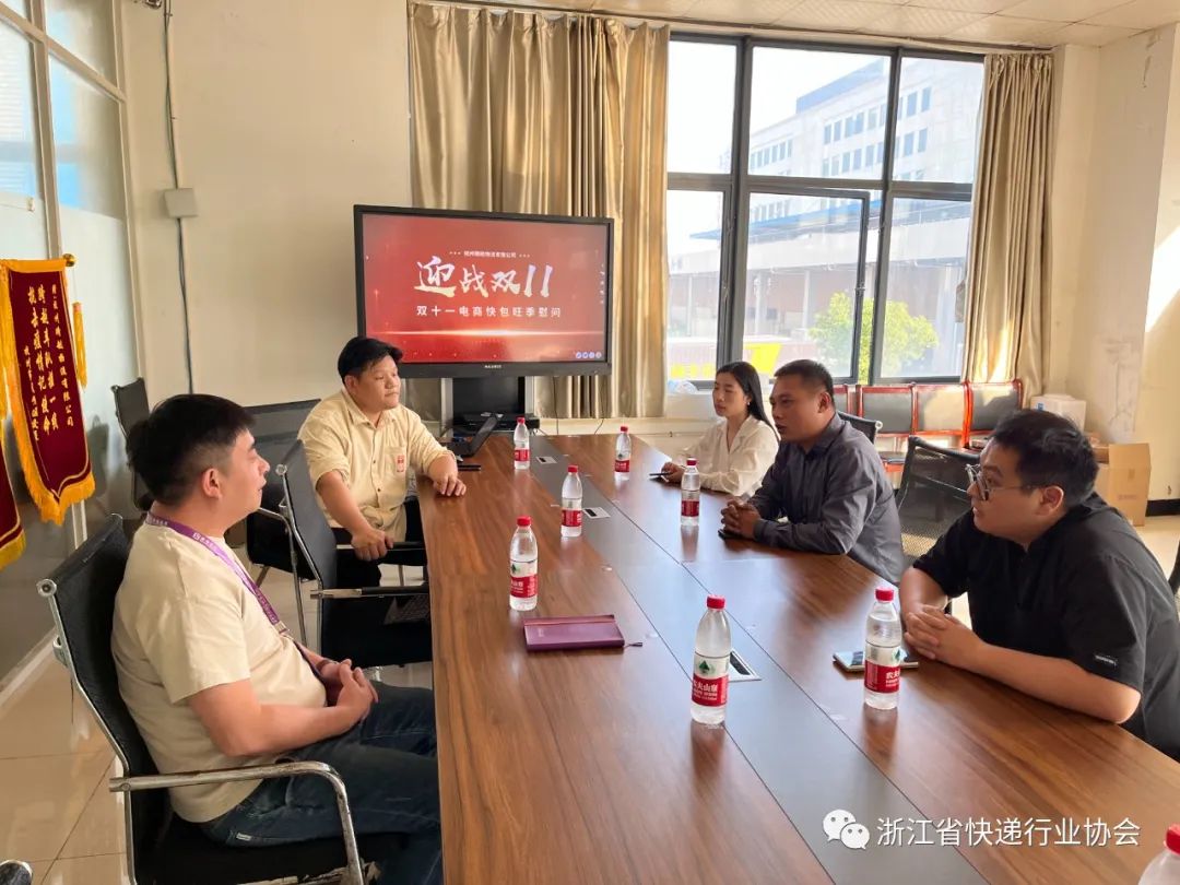 10月31日浙江省快遞行業(yè)協(xié)會常務(wù)副會長兼秘書長王躍平會同浙江省郵政管理局局長魏遵紅、浙江省快遞行業(yè)協(xié)會會長方志鵬(省郵政公司總經(jīng)理)、義烏市郵管局局長張強(qiáng)等領(lǐng)導(dǎo),"雙十一旺季”走訪調(diào)研慰問省協(xié)理事單位義烏韻達(dá)快遞。韻達(dá)省總閆俊、浙南省總孫力威等領(lǐng)導(dǎo)參加座談。