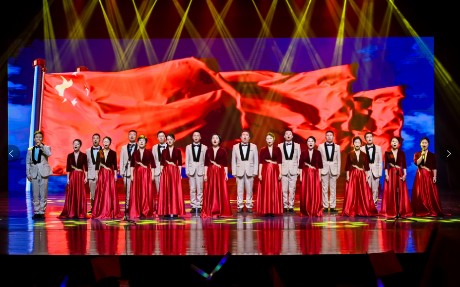 “五星紅旗迎風(fēng)飄揚(yáng),勝利歌聲多么響亮;歌唱我們親愛的祖國(guó),從今走向繁榮富強(qiáng)……”匯演在百人大合唱《歌唱祖國(guó)》中落下帷幕。