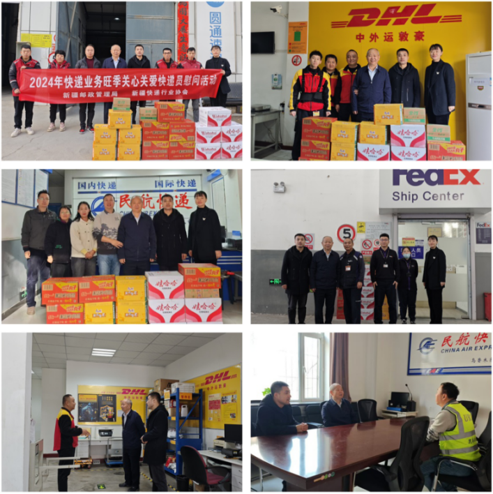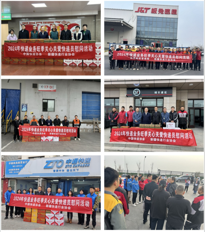 2024年11月18日來源:新疆快遞協(xié)會為貫徹落實國家郵政局關(guān)于做好快遞業(yè)務(wù)旺季服務(wù)保障工作的相關(guān)要求,確保今年旺季期間快遞服務(wù)安全、平穩(wěn)、有序運行,努力打造“暖心旺季”,進一步關(guān)心關(guān)愛基層隊伍,堅持凝心聚力,打造“暖心旺季”。中國快遞協(xié)會、新疆郵政管理局、新疆快遞行業(yè)協(xié)會聯(lián)合在11月7日、12日聯(lián)合開展快遞業(yè)務(wù)旺季關(guān)心關(guān)愛慰問“快遞小哥”活動,看望慰問奮戰(zhàn)在一線的快遞小哥,并為大家送去了方便面、礦泉水、飲料等慰問品。