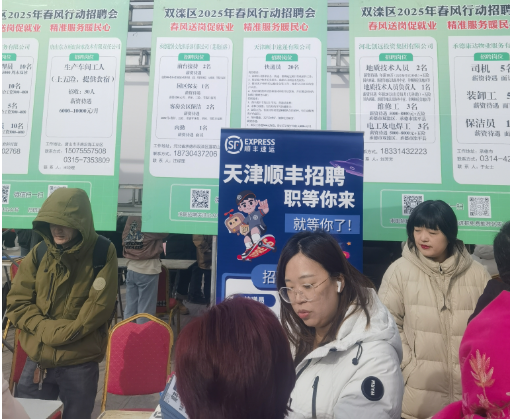 在承德招聘會上,天津市順豐等5家快遞企業(yè)向求職者投放招工簡章,以優(yōu)厚的待遇、良好的工作環(huán)境吸引了一眾求職者,招聘成效顯著。