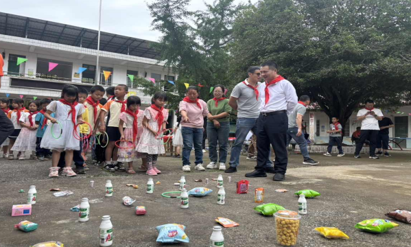 慰問(wèn)品發(fā)放的喜悅還未散去,精彩的游園活動(dòng)隨即火熱開(kāi)場(chǎng),校園瞬間變身歡樂(lè)海洋。孩子們手持剛剛收到的嶄新文具和小禮物,迫不及待地投入到游戲中,歡笑聲回蕩在青山綠水間。