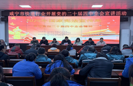 12月5日晚6時30分,咸寧市快遞行業(yè)協(xié)會聯(lián)合咸寧市委社會工作部、市總工會、市人社局、區(qū)總工會等相關部門開展黨的二十屆四中全會精神宣講暨公益普法暨憲法宣傳日活動,40名一線快遞小哥齊聚現(xiàn)場,收獲政策解讀與法治關懷雙重“禮包”。