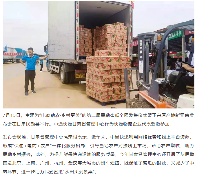 直發(fā)北上廣!民勤蜜瓜再次搭上中通快車