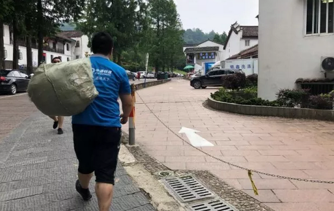 正是因?yàn)榫湃A山獨(dú)特的地形和禁車條例,大多數(shù)快遞公司不愿意快遞員送件,一般委托山上的餐館,在清晨下山采購食材時(shí)幫忙把快遞帶上山。但這樣一來既影響時(shí)效,客戶還得去指定地點(diǎn)取件。