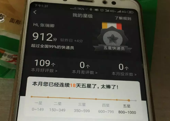 這群人還有一個共同的稱呼--“五星業(yè)務(wù)員”。這是圓通一線快遞小哥的榮譽稱號,除了業(yè)務(wù)量達標(biāo)外,更要在收派時效、服務(wù)質(zhì)量等都達到一定標(biāo)準(zhǔn)。張瑞卿就是其中的一員,“五星”的背后,處處體現(xiàn)著勤奮與夢想。