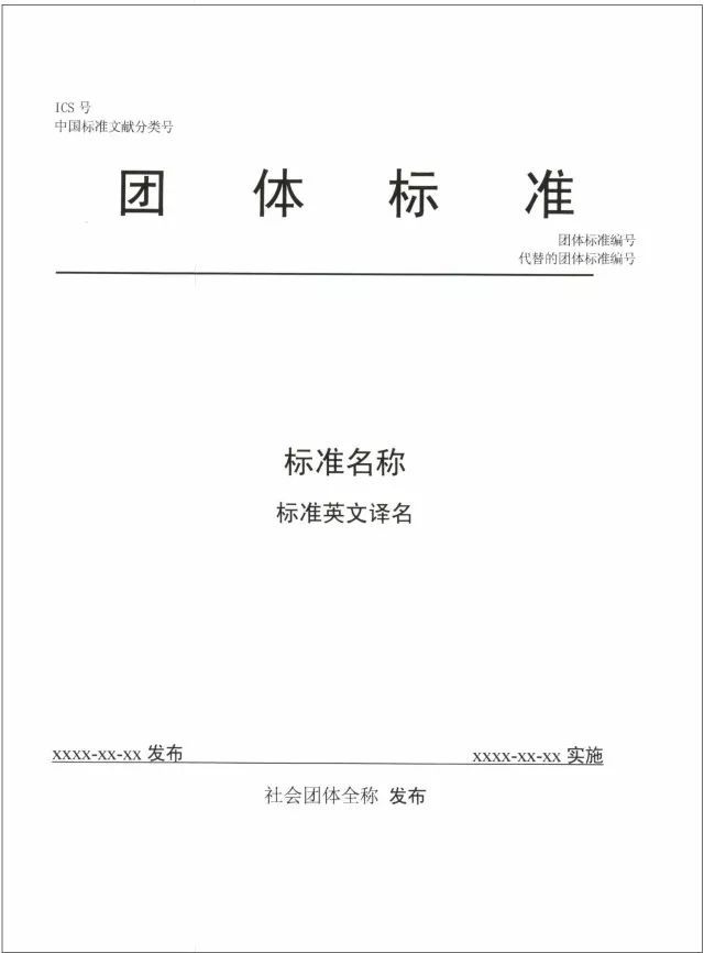 團(tuán)體標(biāo)準(zhǔn)的封面格式應(yīng)當(dāng)符合要求,具體格式見(jiàn)附件。