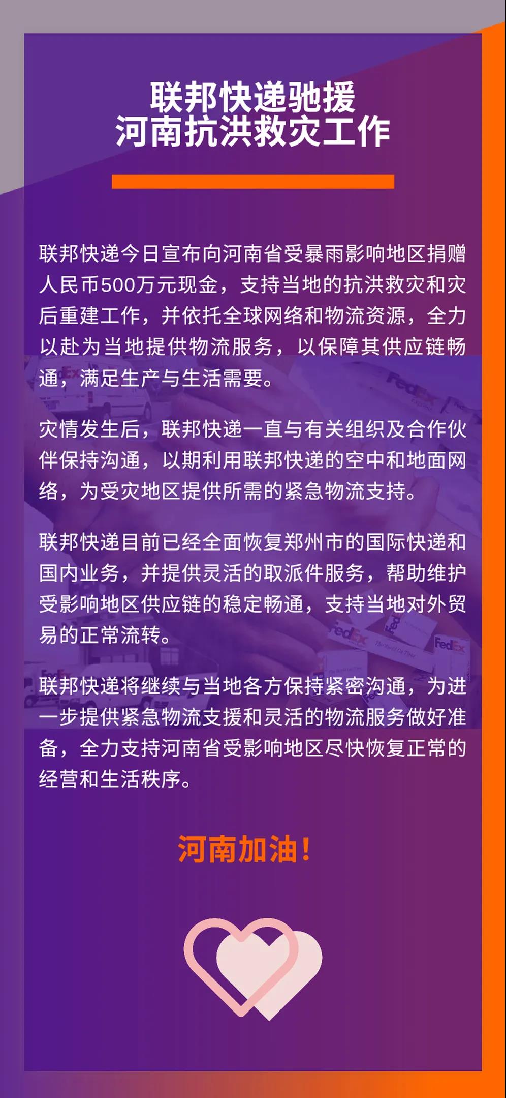 聯(lián)邦快遞馳援河南抗洪救災(zāi)工作