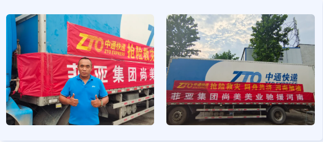 7月24日,中通快遞集團山東管理中心受菲亞美容集團·尚美美業(yè)公司委托,免費將1400件礦泉水、400箱方便面及11臺發(fā)電機運送至河南新鄉(xiāng)。