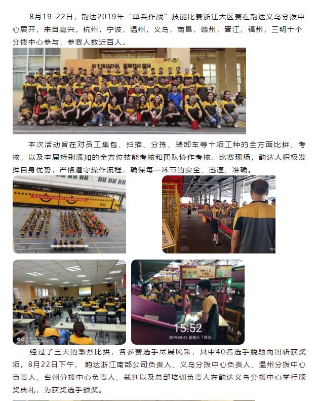韻達(dá)2019年“單兵作戰(zhàn)”技能比賽浙江大區(qū)賽圓滿成功!