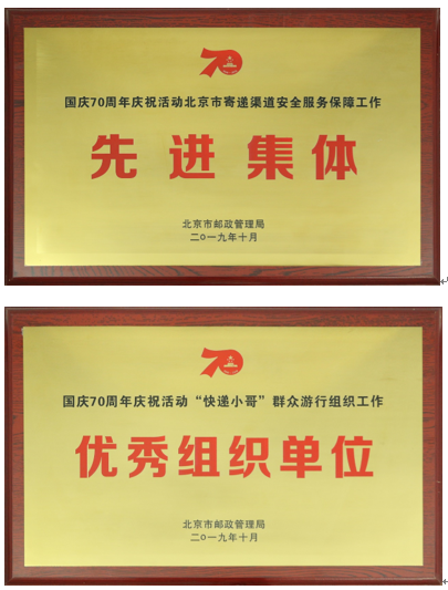 11月14日,國家郵政局、北京市郵政管理局召開國慶70周年慶?;顒颖本┦屑倪f渠道安全服務(wù)保障與“快遞小哥”群眾游行組織工作表彰大會,有8家企業(yè)獲得“國慶70周年慶?;顒颖本┦屑倪f渠道安全服務(wù)工作先進集體”榮譽稱號,8家企業(yè)獲得“國慶70周年慶?;顒印爝f小哥’群眾游行組織工作優(yōu)秀組織單位”榮譽稱號;